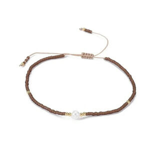 Handcrafted Real Freshwater Pearl Mocha Brown Japanese Glass Beads Bracelet