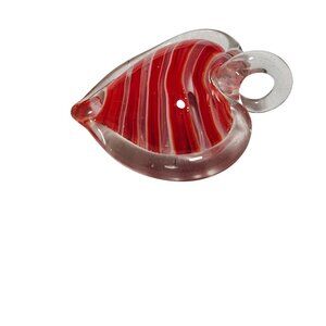 This elegant pendant features a heart shape with striking red and white stripes, skillfully crafted from glass. Its unique design and vibrant colors make it suitable for adding a touch of sophistication to a necklace or charm bracelet. Lightweight at 0.7 oz, it offers comfortable wear.