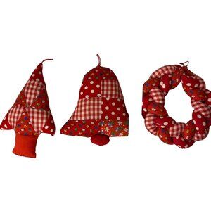Handcrafted Red Patchwork Christmas Decoration Set Plush Tree Bell Wreath Rustic