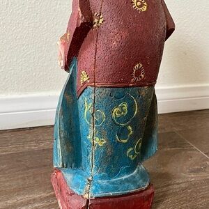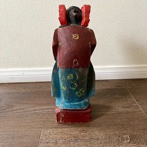 This exquisite handcrafted wooden figurine features vibrant red and blue colors, adding a touch of cultural elegance to your home decor. Perfect for art enthusiasts and collectors.