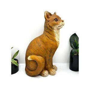 This handcrafted wooden cat sculpture adds a touch of elegance to any space. Carved wood-like finish design and lifelike details make it a standout piece.