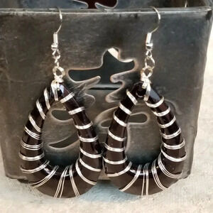 Teardrops are wrapped in a triple strand of silver tone wrapping wire
