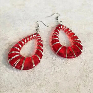 Handcrafted Retro 80s Statement Red Lucite Open Teardrop Wire Wrapped Earrings