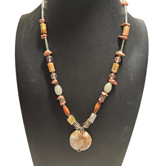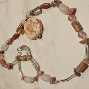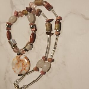 Handcrafted Rhodonite mixed stone and glass necklace. 16"