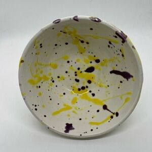 - handmade - rice bowl - colors: purple & yellow - 6” across - 3” tall