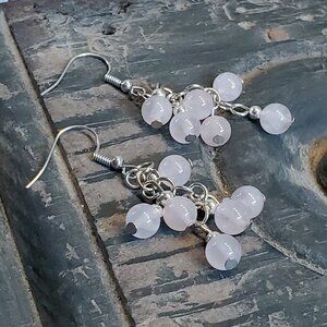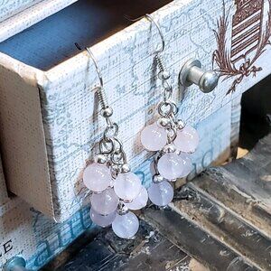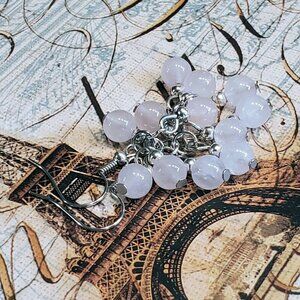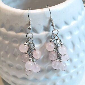Handcrafted Rose Quartz Pink Gemstone Bead Dangle Silver Platinum Plated Earring