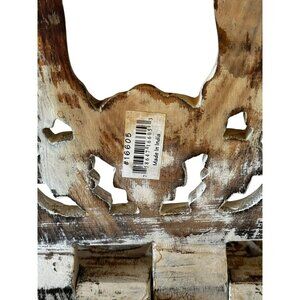 This intricately carved, rustic wood book stand serves as a decorative and functional piece for displaying sacred texts or treasured volumes. With its folding design, it provides a practical solution for storage. Approx. size 11" edge to edge x 6. 75" Height x 6.75" (opened)