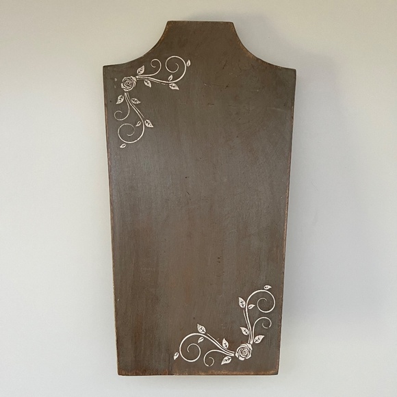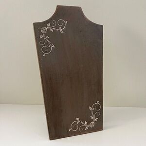 Handcrafted Rustic Wooden Necklace Display Easel Stand With Floral Accents
