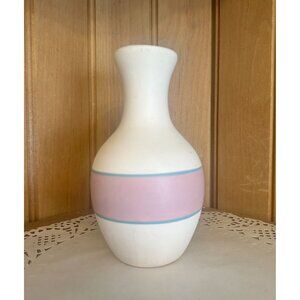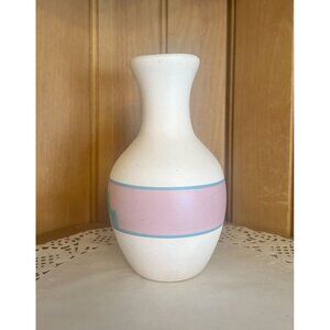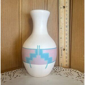 his handcrafted pottery vase features a stylish Southwestern design with pink and turquoise accents. Made in the USA, it stands 6 inches tall.