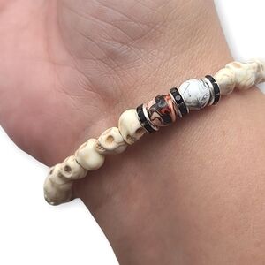 Handcrafted Set Of Stretchy Skull Bracelet & Earrings
