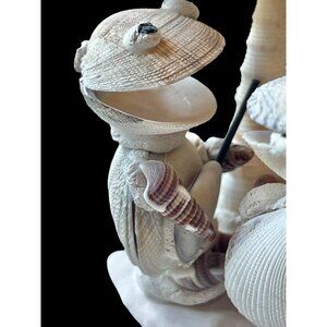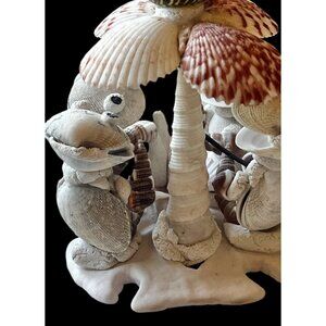Handcrafted Shell Turtle Musician Figurines Under Palm Tree 4" T Vintage