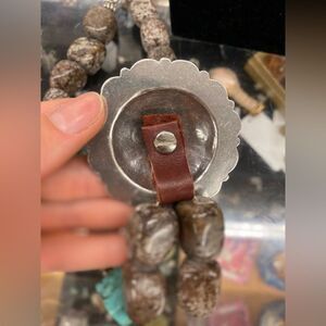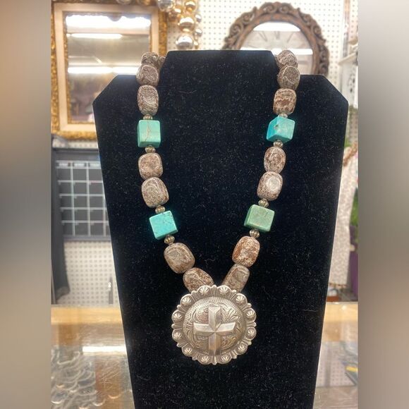 Handcrafted Silver Round Cross w/Natural Stones Necklace
