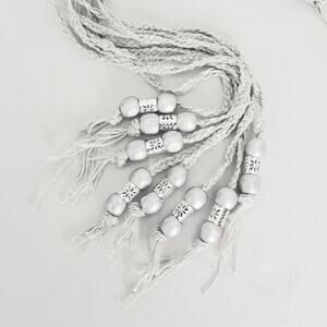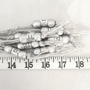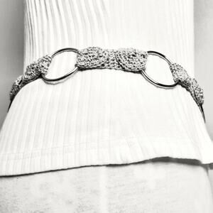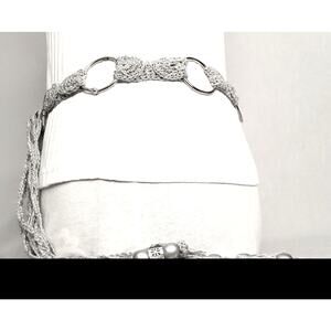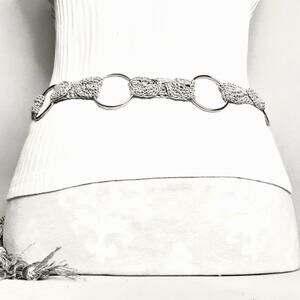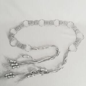 Unique Handcrafted Silver Tone Gray Statement Crochet Chain Link Belt With Beaded Tassels