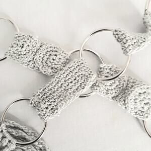 Measurements: ring to ring length 31", tassels approx length 18", total length 67", chain width 1", rings 1 1/2", one ring is 1 1/4", designed to go through the larger rings, weight 3.7 ounces