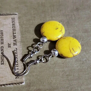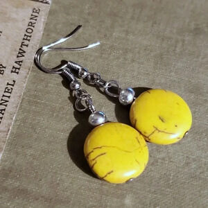 Handcrafted Silver and Yellow Magnesite Gemstone Puffed Coin Dangle Earrings