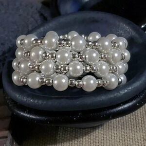 Handcrafted Snow White Glass Pearl Silver Beads Wrap Bracelet