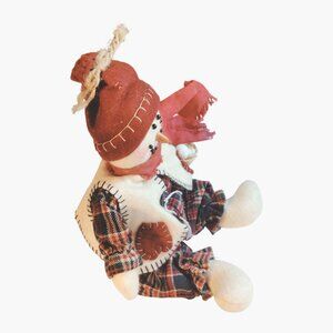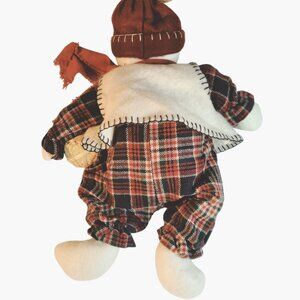 Handcrafted Snowman Doll Snowball Basket Tartan Plaid Outfit Scarf