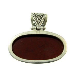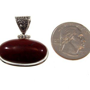 Handcrafted Solid 925 Sterling Silver Balinese Oval Carnelian Cabochon Pendant