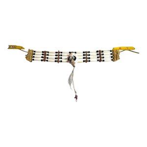 This unique choker combines traditional craftsmanship with contemporary style. Highlighted by a buffalo horn pendant, it’s accented with feathers and beads for a bold, standout look.