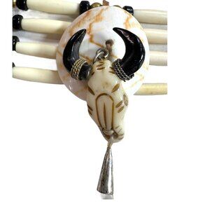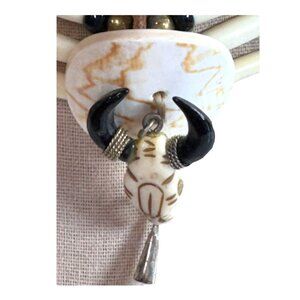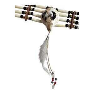 Handcrafted Southwest Choker Necklace Buffalo Horn Pendant Feathers Beads Strap
