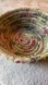 Enhance your decor with this handcrafted spiral basket. The vibrant green and pink colors create a stunning visual appeal, perfect for any room.
