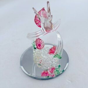 Handcrafted Spun Glass Hummingbird Sculpture on Mirror in fine condition with no damage. 4” tall