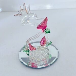 Handcrafted Spun Glass Hummingbird Sculpture on Mirror in fine condition with no damage. 4” tall