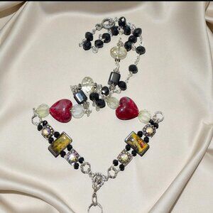 This necklace tells a story of devotion and artistry, showcasing St. Teresa's image encased in glass. The intricate silverwork and vibrant beads make each piece unique. A blend of vintage elements weaves a timeless narrative, perfect for those who cherish meaningful craftsmanship.