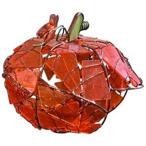 This handcrafted stained glass pumpkin is pure artisan magic - each orange glass piece catches light like captured sunset vibes. The copper wire detailing gives it that perfect rustic-meets-elegant aesthetic that screams "I have impeccable taste." Pop a tea light or votive candle inside and watch your room transform into a cozy autumn sanctuary. Those mosaic glass segments create the most gorgeous light patterns that'll have your guests asking "where did you find THAT masterpiece?"