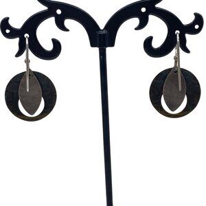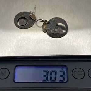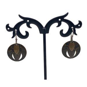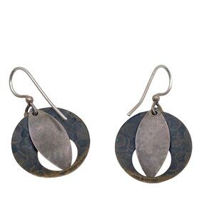 Lightweight dangle earrings combining sterling silver, brass, and copper. Textured finish with leaf-shaped accents. Stylish and versatile accessory.