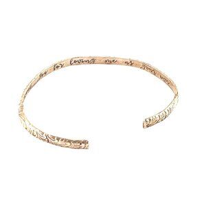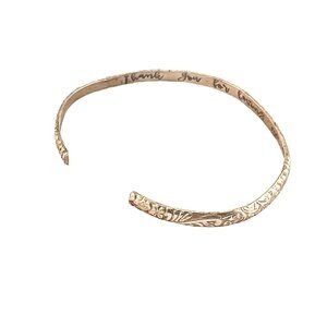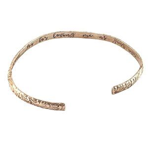 This Unbranded handcrafted sterling silver bangle bracelet is designed with intricate floral engravings and a heartfelt interior saying, "Thank you for Loving Me As Your Own". The size 7 bracelet is adjustable to fit various wrists.
