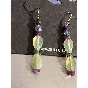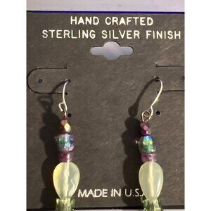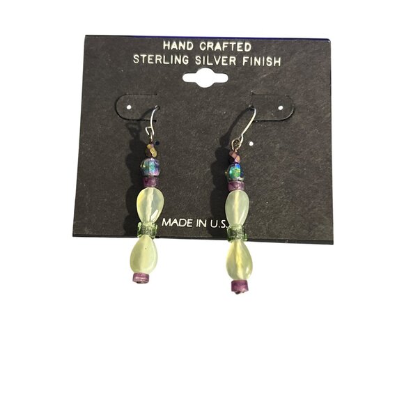 Handcrafted Sterling Silver Finish Art Glass Dangle Earrings Hook 2" New on Card