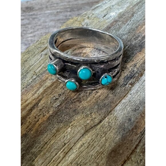 Handcrafted Sterling Silver Ring With Turquoise Stones Size 8