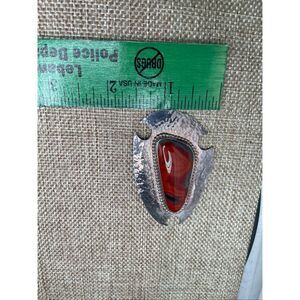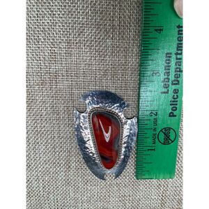 Handcrafted Sterling Silver Shield Pendant w/ Red Agate – Signed 2010