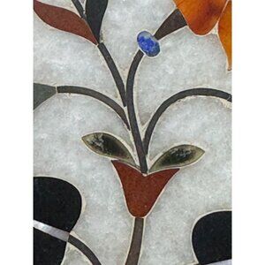 Handcrafted Stone Inlay Floral Art Panel Featuring Agate Carnelian Lapis Lazuli