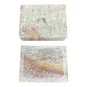 Handcrafted Stone Trinket Box With Bear, Paw Print Design Rectangular Multicolor