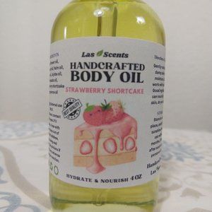 Indulge in the sweet scent of Las Scents Srpring Strawberry Shortcake Body Oil, perfect for hydrating and nourishing your skin. Made with a blend of Olive oil, Coconut oil, Sunflower Oil, Jojoba oil, Palm oil and Avocado oil along with Strawberry shortcake fragrance oil.