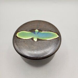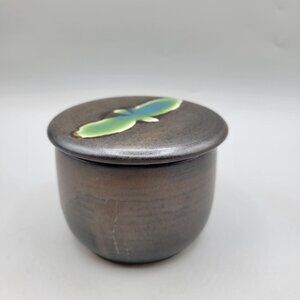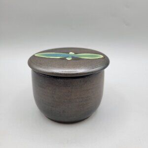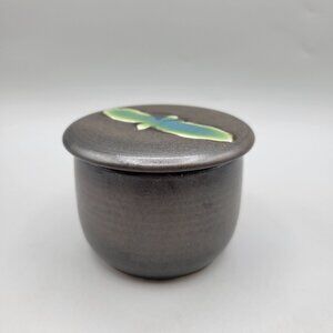 Handcrafted Studio Pottery French Butter Bell Crock Green Leaf Artist Signed