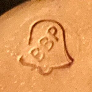 Exquisitely handcrafted sunflower mug with each side featuring a different incised and embossed glazed yellow sunflower with a brown center and green leaves against an unglazed background. The extended lip, upper portion of the exterior, and the interior are glazed in brown hues. Broad flattered handle with raised sides and a comfortable thumb rest. Measures 4.75” tall with a 3.25” diameter. Holds 17 fluid oz. Unglazed underside features incised makers mark with BBP enclosed in a bell shape.