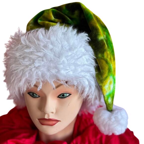 Handcrafted Tie Dye Santa Hat Holiday Wear Grinch Vibes