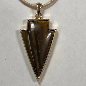 Elevate your jewelry collection with this stunning handcrafted Tiger's Eye arrowhead pendant. Set in a sleek gold-tone mounting, this unique piece combines natural beauty with artistic design. Key features include:
