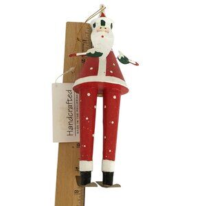 Handcrafted Tin Santa Skiing Ornament Red White Folk Art Lodge Christmas Decor