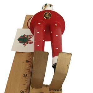 Painted in bright red and white folk art style with hand-detailed face and skis, he’s a whimsical accent perfect for ski enthusiasts, lodge-style holiday décor, or rustic Christmas collections.