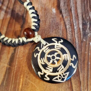 Handcrafted Tribal Carved Symbols Pendant Necklace