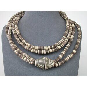 Handcrafted Tribal-Inspired Two Strand Necklace With Brown & Cream Discs Beads