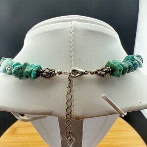 Handcrafted Turquoise Beaded Necklace With Pendant Silver Tone Accents