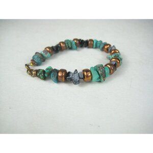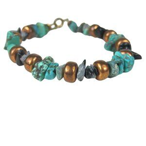 Handcrafted Turquoise Stone Copper Bead Bracelet Snowflake Agate Chip Black