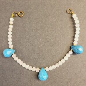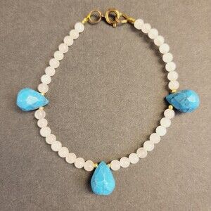 Handcrafted Turquoise/White Jade Beaded Bracelet