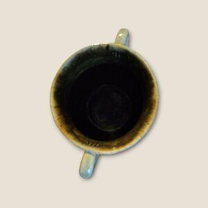 A charming handcrafted ceramic vase with a glossy glaze finish. Its dual-handle design adds both functionality and a touch of rustic elegance.