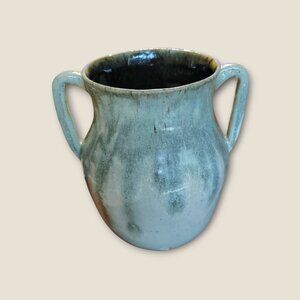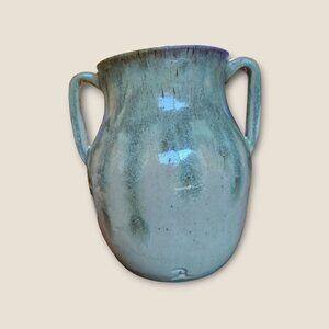 Handcrafted Two-Handled Pottery Vase 7.5"H X 8" Glazed Finish Unique Art Decor